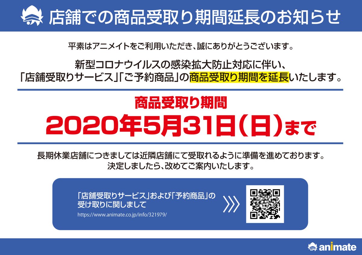 予約商品引き取り期間変更の重要なおしらせ アニメイト